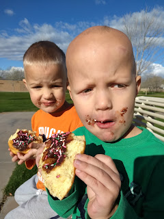 Every night at dinner, Josh asks the boys what they did that day. Almost every single day their response is, "We played and played and played and played." It is true! We play and play, every day, and every day is so much fun. Having two almost for year olds makes every day exciting and with our little almost 4 month old tagging along, we stay pretty busy. Life is good and I wouldn't change our type of crazy for anything.